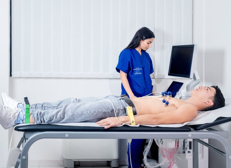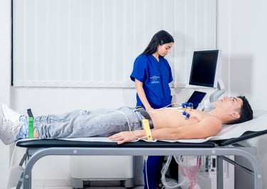 L'elettrocardiogramma (ECG) è un esame cardiologico strumentale eseguito in ambulatorio mediante posizionamento di elettrodi nel torace e negli arti del paziente tramite il quale è possibile registrare e visualizzare l'attività elettrica del cuore. Fornisce informazioni sul ritmo cardiaco e sulla frequenza cardiaca (e quindi sulla presenza di eventuali aritmie), e fornisce informazioni "indirette" permettendo di sospettare la presenza di eventuali malattie strutturali del cuore. L'esame si svolge in pochi minuti, in posizione supina, e non comporta alcun tipo di controindicazione o rischio.